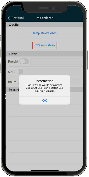 Now press "Select CSV" and import your CSV into the application. When you have finished this step, the following message will appear.