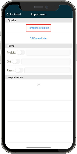 Select "Create Template" to generate a CSV template.
